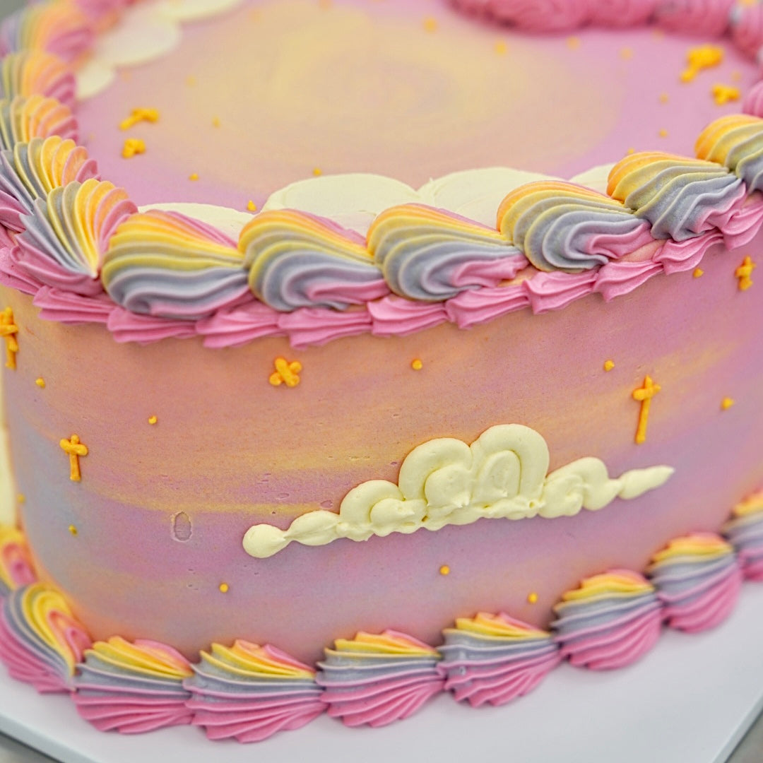 Sunset Baby Vintage Cake – A sunset-inspired vintage cake with ombre tones and dreamy buttercream clouds.